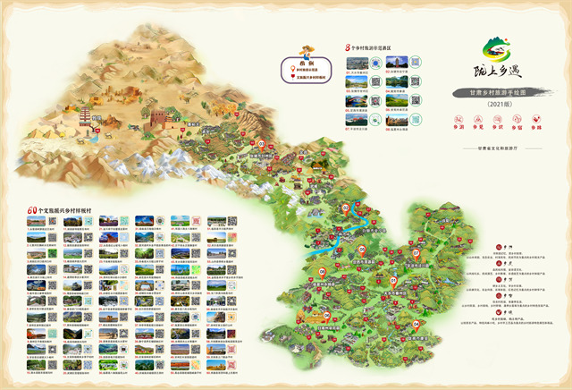 ——鄉(xiāng)村旅游。甘肅旅游,70%以上的旅游資源集中在農(nóng)村。近年來,全省文旅系統(tǒng)累計(jì)投資12億元,共打造省級(jí)鄉(xiāng)村旅游示范村310個(gè),創(chuàng)建鄉(xiāng)村旅游示范縣14個(gè),文旅振興鄉(xiāng)村樣板村120個(gè),培育鄉(xiāng)村旅游合作社470個(gè),38個(gè)村入選建全國鄉(xiāng)村旅游重點(diǎn)村,3個(gè)鄉(xiāng)鎮(zhèn)入選全國首批鄉(xiāng)村旅游重點(diǎn)鄉(xiāng)鎮(zhèn)、6個(gè)村入選第三批全國鄉(xiāng)村旅游重點(diǎn)村名錄,2家民宿創(chuàng)建為首批全國甲級(jí)旅游民宿。美麗鄉(xiāng)村及特色民宿已成為省內(nèi)外游客停留和消費(fèi)的首選地,甘南扎尕那村、隴南花橋村、慶陽天富億村、天水孫集村、平?jīng)鲽P凰村、臨夏大川村等一大批示范村已成為省內(nèi)外游客的熱門打卡地,美麗鄉(xiāng)村正在成為全省綠色經(jīng)濟(jì)的新型引擎。其中,2019年,甘肅鄉(xiāng)村旅游接待游客5918萬人,收入175億元,鄉(xiāng)村旅游占到全省文化旅游半壁江山,讓老百姓身邊青山綠水真正成了“金山銀山”。2020年全國鄉(xiāng)村旅游及民宿工作現(xiàn)場(chǎng)會(huì)、“一帶一路”美麗鄉(xiāng)村國際論壇在甘肅舉辦,甘肅鄉(xiāng)村旅游一枝獨(dú)秀、異軍突起,受到社會(huì)各界高度贊揚(yáng)和廣泛關(guān)注。2021年,甘肅鄉(xiāng)村旅游游客接待量達(dá)1.31億人次,實(shí)現(xiàn)鄉(xiāng)村旅游收入390.33億元,分別恢復(fù)至疫情前的103.20%和114.80%,顯著高于國內(nèi)旅游的整體恢復(fù)比例。值得一提的是,全省文旅系統(tǒng)在大力發(fā)展鄉(xiāng)村旅游的同時(shí),堅(jiān)持把非遺工坊建設(shè)也作為重中之重,積極創(chuàng)新探索“非遺+扶貧”模式,打造融入當(dāng)代審美的非遺品牌,搭建扶貧產(chǎn)品通往市場(chǎng)的平臺(tái),全省累計(jì)建成非遺扶貧就業(yè)工坊106家,共有11家非遺工坊納入全國消費(fèi)扶貧產(chǎn)品目錄和數(shù)據(jù)庫,認(rèn)定省級(jí)以上非遺就業(yè)工坊93家,涉及各級(jí)傳統(tǒng)技藝類非遺代表性項(xiàng)目77項(xiàng),分布在全省11個(gè)市州46個(gè)脫貧縣區(qū),吸納就業(yè)6000多人;年均組織開展“非遺過大年、文化進(jìn)萬家”民俗展演活動(dòng)1000多場(chǎng)次,極大豐富了廣大群眾精神文化生活。