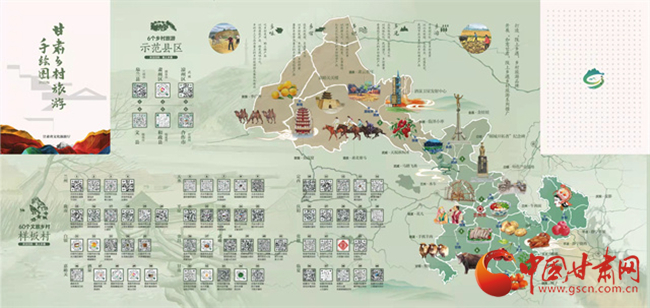 據(jù)了解,為了深入推進(jìn)文旅市場(chǎng)復(fù)蘇百日攻堅(jiān)行動(dòng),加強(qiáng)產(chǎn)品開(kāi)發(fā)供給,促進(jìn)鄉(xiāng)村旅游升溫,省文旅廳于12月13日發(fā)布了2022版甘肅鄉(xiāng)村旅游手繪圖。手繪圖以“相約隴原促振興·富了口袋富腦袋”為主題,對(duì)2022年創(chuàng)建的6個(gè)鄉(xiāng)村旅游示范縣,60個(gè)文旅振興鄉(xiāng)村樣板村開(kāi)發(fā)設(shè)計(jì)了電子“二維碼”,設(shè)置了甘肅省鄉(xiāng)村旅游60條四季精品線(xiàn)路,幫助游客品味鄉(xiāng)村風(fēng)情、感知鄉(xiāng)村文化、體驗(yàn)鄉(xiāng)村魅力,進(jìn)一步展示甘肅鄉(xiāng)村旅游新形象、擴(kuò)大鄉(xiāng)村旅游影響力,做亮“隴上鄉(xiāng)遇”鄉(xiāng)村旅游品牌,打造“隴上鄉(xiāng)遇”鄉(xiāng)村旅游全景圖。