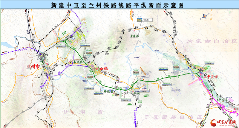 據(jù)了解,銀蘭高鐵中蘭段經(jīng)白銀市靖遠(yuǎn)縣北灘鎮(zhèn)進(jìn)入甘肅境內(nèi),向南途經(jīng)白銀市平川區(qū)、白銀區(qū),蘭州市皋蘭縣、蘭州新區(qū)及永登縣,新建北灘站、平川西站、靖遠(yuǎn)北站、白銀南站、秦王川站5座車站。線路向西連接中川城際鐵路進(jìn)入蘭州西客站,向北直達(dá)中川機(jī)場并連通蘭張三四線,可經(jīng)由武威、金昌,在張掖與蘭新高鐵連通,向東直通銀川,可轉(zhuǎn)向慶陽至西安,構(gòu)建了蘭州到慶陽、平?jīng)龅鹊貐^(qū)的高鐵新通道。