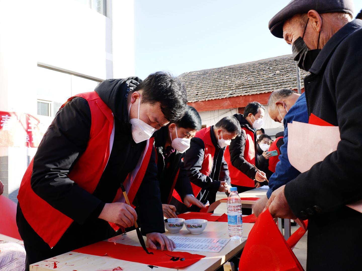 活動現(xiàn)場,來自涼州區(qū)書法家協(xié)會、涼州區(qū)書畫院的文化志愿者們揮毫潑墨,筆尖游走于墨色與紅紙之間,以筆寄意、以字傳情,片刻間,一張張象征平安吉祥的"福"字、一副副謳歌黨的二十大、內(nèi)容文明健康的紅色喜慶春聯(lián),寄托著滿滿的新春祝福撲面而來?,F(xiàn)場群眾拿到自己心儀的春聯(lián)和"福"字,喜悅之情溢于言表。活動中,涼州區(qū)婦女聯(lián)合會、共青團涼州區(qū)委等單位還開展了愛心捐贈、公益診療、義務(wù)理發(fā)等志愿服務(wù)活動,為困難群體送上溫暖和健康。