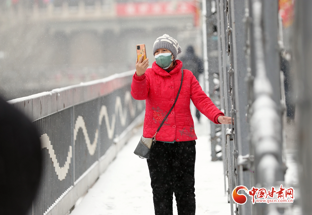2月8日,受冷空氣影響,省城蘭州迎來(lái)兔年首場(chǎng)降雪天氣,伴隨著降雪而來(lái)的降溫難擋人們的熱情,許多市民紛紛走出家門(mén),踏雪賞景。