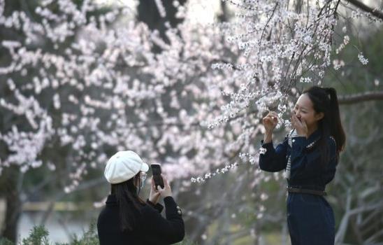 近期,隨著氣溫升高,北京玉淵潭公園里的山桃花爭相綻放,美不勝收。