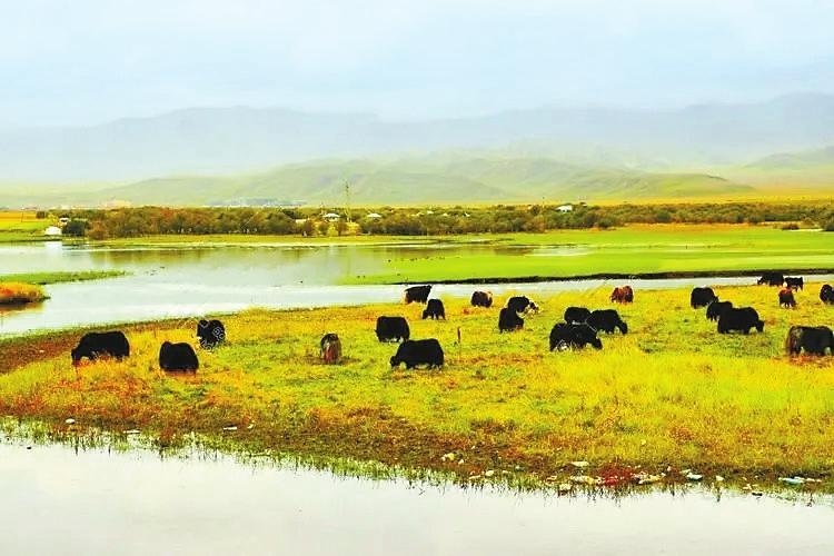 甘南的山、甘南的水,甘南的牛羊,構(gòu)成了一幅與城市工業(yè)化生活完全不同的畫面。因著海拔的緣故,就算陽(yáng)光四起,甘南的遠(yuǎn)山上也都籠罩著一層青煙似的薄霧,這是中國(guó)畫的審美。人們偏愛(ài)云山霧海,偏愛(ài)影影綽綽的群山,要是群山之巔再有一些經(jīng)年不化的雪,那么此地就已經(jīng)擔(dān)得起一句“意境”了。
