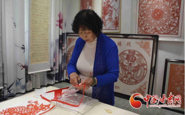 中國甘肅網(wǎng)5月18日訊 (本網(wǎng)記者 田洋 通訊員 丁海琴)5月17日,在瓜州縣文化館內一片“沙沙”的裁剪聲中,一張張紅紙,折折剪剪、從內往外、從簡到繁,普通的紅紙有了圖案,寫意與寓意步步呈現(xiàn)。