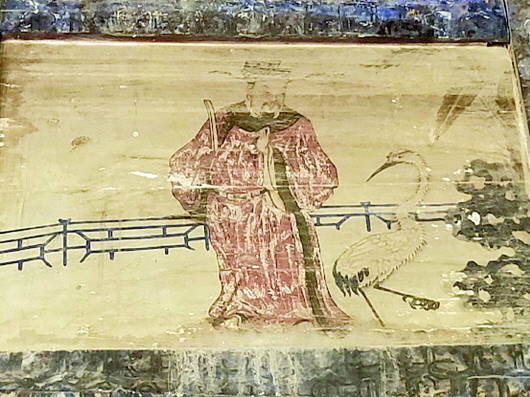 戲樓內(nèi)二簾額板和梁柱上較好地保存了許多清代彩畫(huà),其中以墨書(shū)“太古元音”和彩畫(huà)“天官賜福圖”最為精彩。
