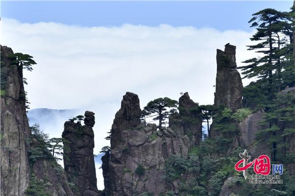 7月22日下午,安徽黃山風(fēng)景區(qū)暴雨洗禮之后,漫山清秀俊逸,山石似黛,蒼松翠綠,云霧飄渺間,時(shí)而煙云繚繞如輕紗飛舞,時(shí)而又在千峰萬壑中波濤涌動(dòng),與奇松、怪石相映成趣,美如仙境。