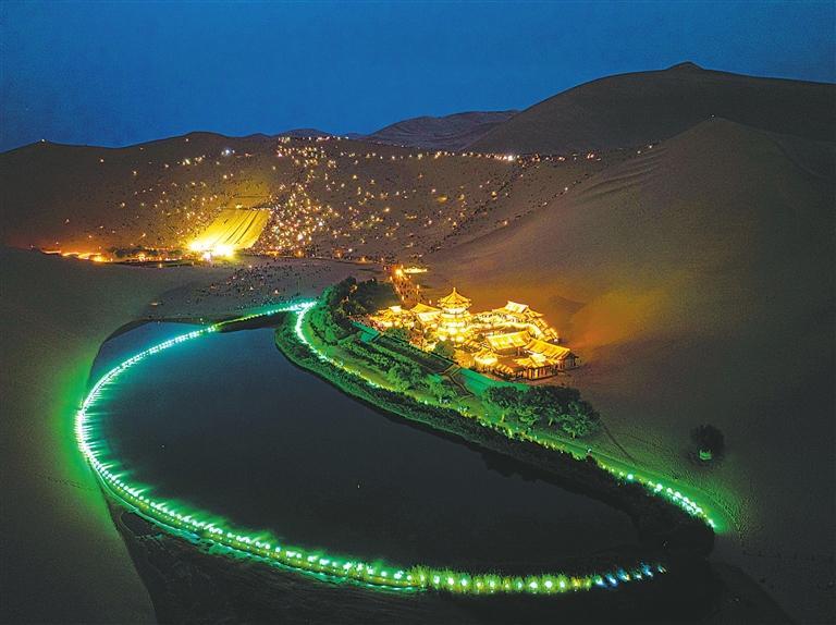 原標(biāo)題:沙漠演唱會 點(diǎn)亮月牙泉