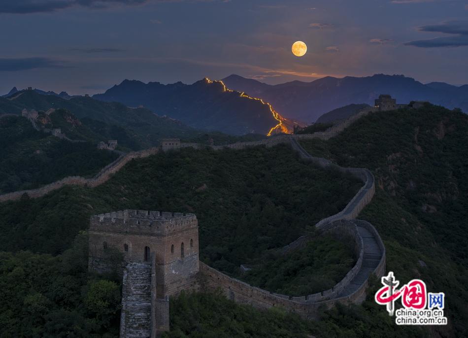 初秋的金山嶺長(zhǎng)城在超級(jí)月亮的映襯下,更顯得神秘而壯美。金山嶺長(zhǎng)城的雄偉壯觀和自然界的美妙令人難忘。