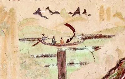 作為體育運動中的水上“競賽項目”,游泳與操舟活動亦是敦煌壁畫中常見的表現(xiàn)內(nèi)容。敦煌壁畫中表現(xiàn)游泳的壁畫有十幾幅,是當時人們參與健身、競賽活動的真實寫照。在莫高窟257窟中,有一幅繪制于北魏時期的游泳圖,圖中四個暢游水中的健兒,手臂高高揚起,像是在同時劃水,整體形成了一個花朵的圖案,類似現(xiàn)在花樣游泳集體賽的場景。如果配上音樂,呈現(xiàn)出的就是一場現(xiàn)代版的花樣游泳比賽(圖②)。