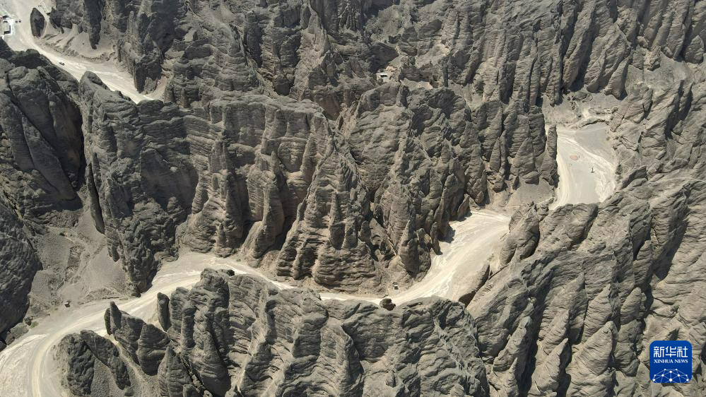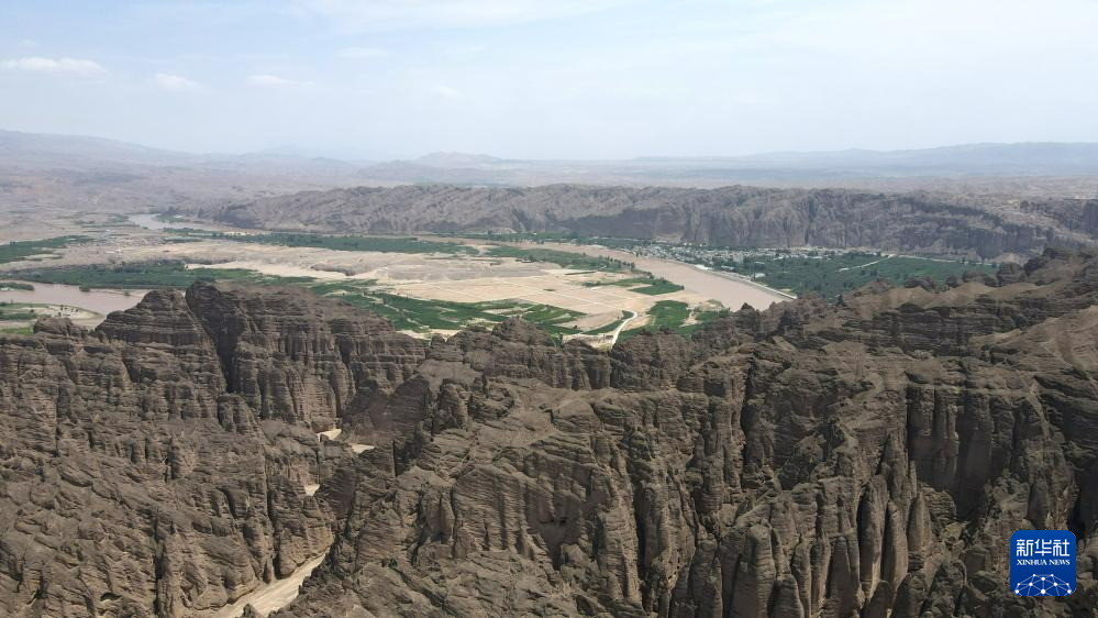 這是位于甘肅省白銀市景泰縣中泉鎮(zhèn)龍灣村的黃河石林景觀。黃河石林千峰競(jìng)奇、峽谷蜿蜒,與黃河遙相呼應(yīng),形成山環(huán)水轉(zhuǎn)、動(dòng)靜結(jié)合的自然奇觀(7月11日攝,無人機(jī)照片)。新華社記者 張可任 攝