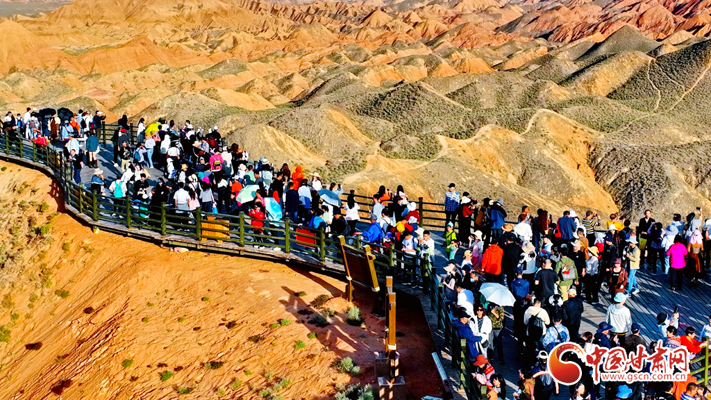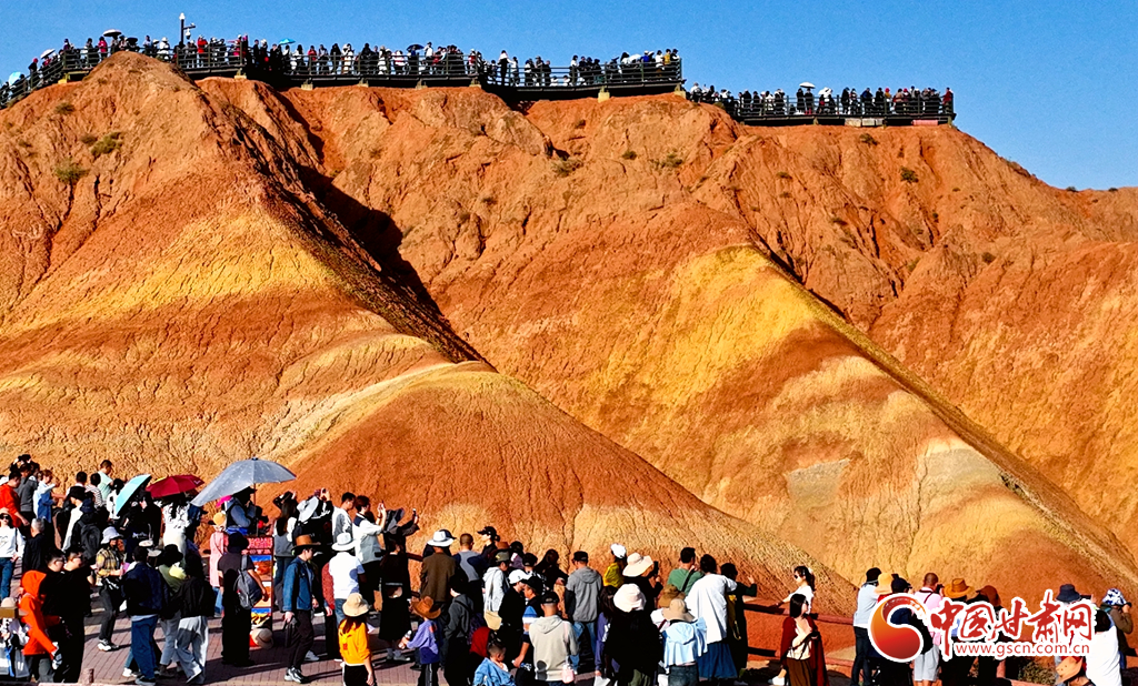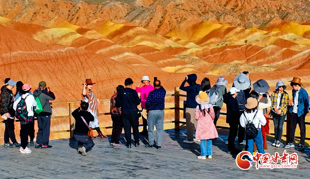 9月30日,甘肅張掖七彩丹霞景區(qū)內(nèi)人頭攢動(dòng),全國(guó)各地的游客紛至沓來(lái),欣賞獨(dú)特的丹霞地貌,領(lǐng)略西北壯美景色。