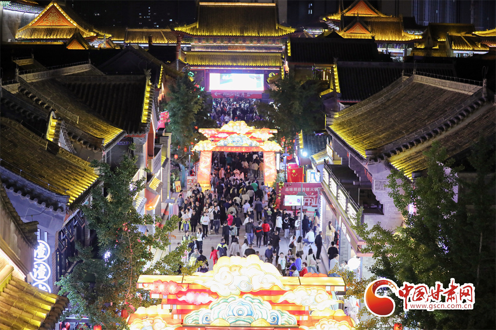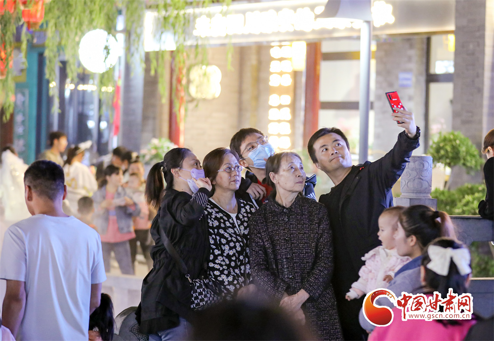 10月1日,國慶節(jié)期間,位于蘭州市七里河區(qū)的蘭州老街燈光璀璨,市民和游客紛紛前來賞景、游玩、品美食,用多種方式慶國慶、度假期。