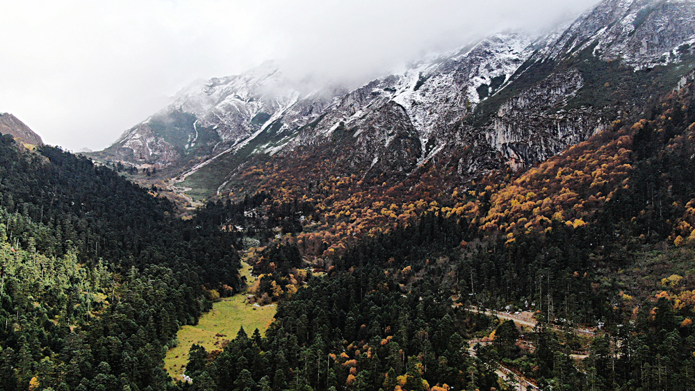 金秋時節(jié),甘肅省隴南市宕昌縣官鵝溝森林公園層林盡染,斑斕如畫,吸引了不少游客前來游玩。新華網(wǎng)發(fā)(劉輝 攝)