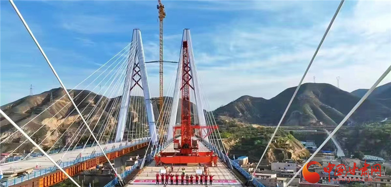 桑園子黃河大橋全長959米,是國內(nèi)8度以上地震區(qū)最大跨度分幅聯(lián)塔斜拉橋,也是我省打造的首條“5G+智慧公路”示范項(xiàng)目。上午10時(shí),隨著最后一片梁成功架設(shè)到橋墩上,桑園子黃河大橋?qū)崿F(xiàn)合龍。該橋梁在建造過程中克服了橫跨黃河天險(xiǎn)、桑園子山險(xiǎn)區(qū)、隴海鐵路、東金公路帶來的巨大挑戰(zhàn),無懼區(qū)域內(nèi)22條地震斷裂帶和峽谷大風(fēng)沖擊的影響,同時(shí),緊跟創(chuàng)新驅(qū)動(dòng)發(fā)展理念,深入開展多項(xiàng)創(chuàng)新技術(shù)應(yīng)用研究,實(shí)現(xiàn)多個(gè)“從0到1”的突破。