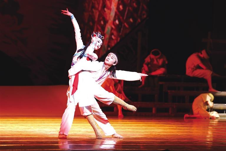 經(jīng)典舞劇《大夢(mèng)敦煌》是一部富于傳奇色彩的四幕舞劇,首演至今,已獲得中宣部“五個(gè)一工程”獎(jiǎng)、中國舞蹈“荷花獎(jiǎng)”、中國“文華獎(jiǎng)”等多個(gè)獎(jiǎng)項(xiàng),被譽(yù)為中國原創(chuàng)舞劇中的頂級(jí)之作,民族舞劇的經(jīng)典之作。當(dāng)晚,集故事美、音效美、舞美美、表演美于一身的《大夢(mèng)敦煌》,以一場淋漓盡致、亦夢(mèng)亦幻的完美演出,收獲了現(xiàn)場觀眾經(jīng)久不息的掌聲。圖為演出現(xiàn)場。