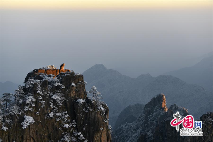 2024年1月2日夜,黃山下了新年的第一場初雪。1月3日早雪后的黃山銀裝素裹,在陽光下晶瑩剔透。本組照片拍攝于獅子峰。獅子峰在黃山后山的北海景區(qū),這里群峰競秀、巧石眾多,清涼臺、猴子觀海都這座山上,“不到獅子峰不見黃山蹤”是北海的風景窗。