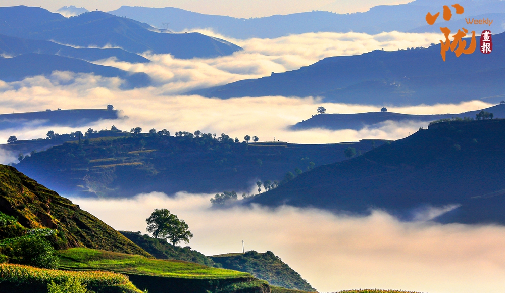 一塊塊梯田,從山峁到山腳,依次而下,大大小小,一層層、一片片,遠遠望去,千層萬疊,一片紛繁。蔥綠與明黃裝扮的沃野,是季節(jié)的舞衣,也是莊戶人的希望。