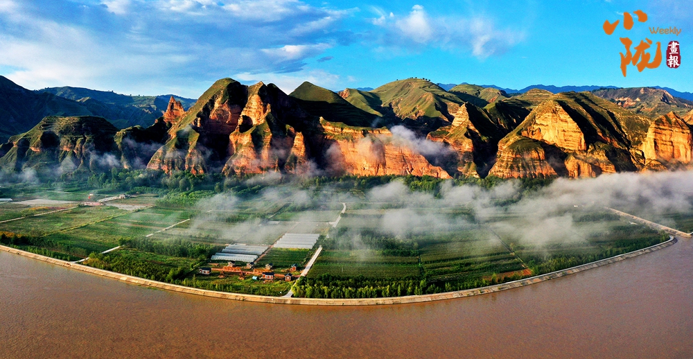 在旅游大通道積石山段遠眺,云霧穿山飄過,遠處的村莊和梯田時隱時現(xiàn),遠山近嶺,草樹煙村......置身其中,仿佛步入了人間仙境。