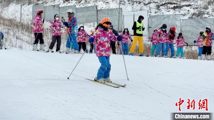 圖為滑雪教練對臺胞青年進(jìn)行首次滑雪前的培訓(xùn)。王牧雨 攝