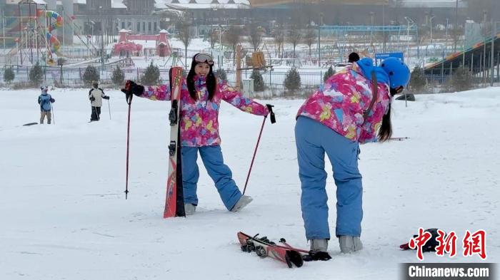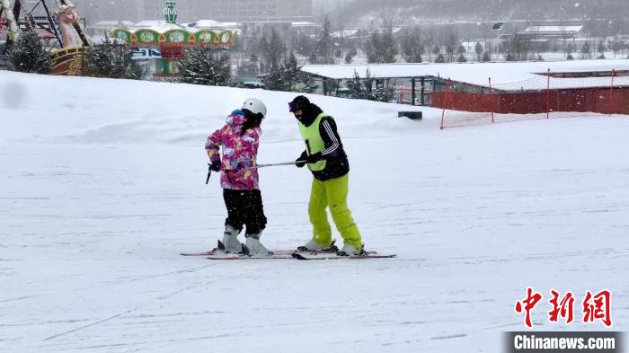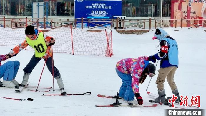 圖為滑雪教練協(xié)助臺胞青年進(jìn)行滑雪訓(xùn)練。王牧雨 攝