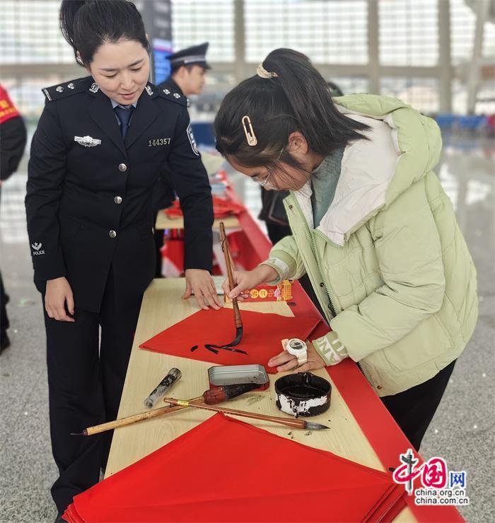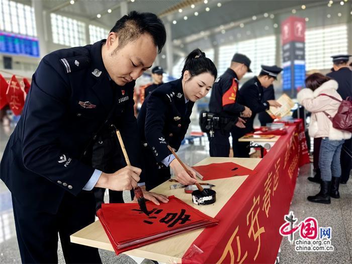 本次活動由莆田車站派出所牽頭組織,聯合中信銀行、莆田站共同開展。活動期間,民警與志愿者在莆田站甬廣場候車室為旅客發(fā)放高鐵安全宣傳單及春聯,并由青年民警現場書寫春聯、福字送給來往旅客,將平安、溫馨傳遞給每一個人。