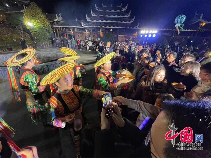 好在天氣給臉,年三十到正月初五,天天陽光明媚,溫暖熙熙,給演唱會的人氣奠定了很好的基礎(chǔ)。你瞧,穿巖山景區(qū)楓香瑤寨、千里古寨、雁棲山莊、蒲安沖民宿、時珍園康養(yǎng)上千個房間都住滿了游客,都連統(tǒng)溪河鎮(zhèn)上的酒店、客棧都是爆棚。從婁底趕來李小苑一家五口和唐詩一家三口,結(jié)伴而來,沒有住處,只好到遠(yuǎn)離景區(qū)15公里的縣城住下,然后去景區(qū)吃晚飯,晚上觀看演出。唐詩對筆者說,我來過穿巖山,感覺這里的風(fēng)景好看,工作人員也很客氣,有那么多的住宿點,我就沒有預(yù)訂。想不到來了之后,全訂完了。