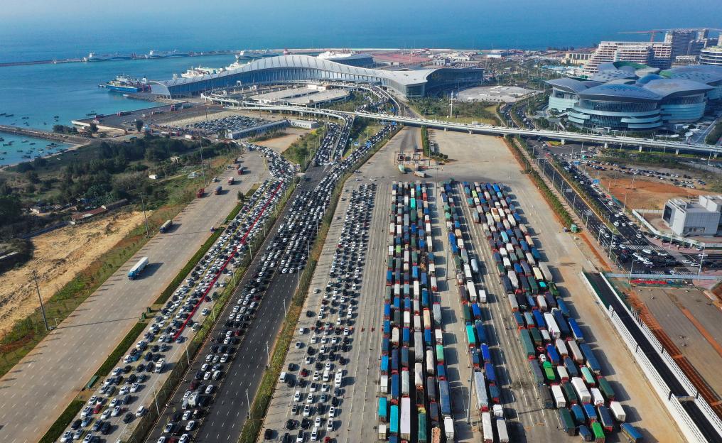 ??谑薪煌ㄟ\(yùn)輸和港航管理局發(fā)布的信息顯示,截至2月19日15時(shí),預(yù)約出島小車(chē)總數(shù)約2萬(wàn)輛,已運(yùn)送出島約1萬(wàn)輛,全天預(yù)約待出島約1萬(wàn)輛。新海港港區(qū)和港外待渡車(chē)場(chǎng)呈現(xiàn)飽和狀態(tài),疏運(yùn)仍需較長(zhǎng)時(shí)間。
