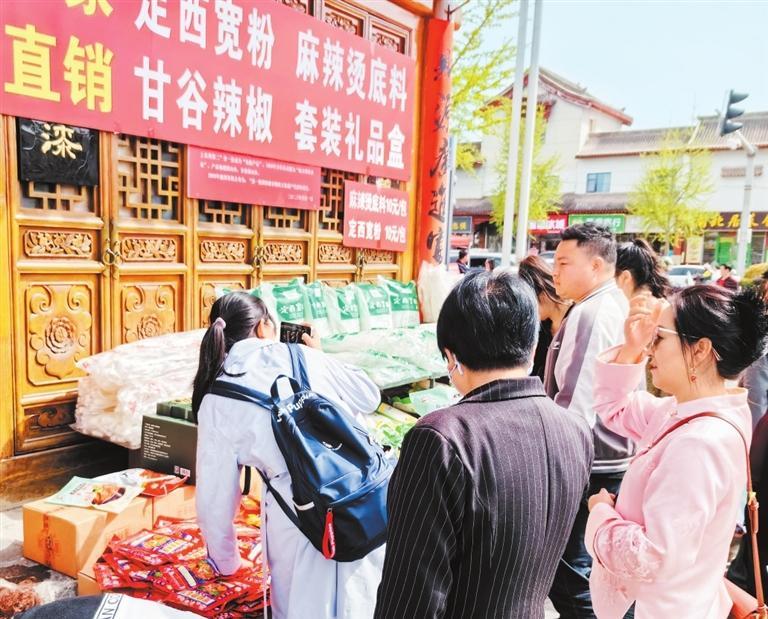 游客在代銷點購買麻辣燙底料和粉條。新甘肅·甘肅日報記者 顧麗娟