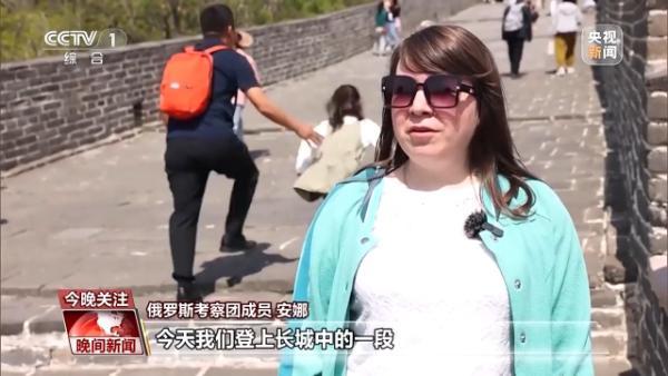 俄羅斯考察團(tuán)成員 安娜:今天我們登上長(zhǎng)城中的一段,我的感受非常棒。這段長(zhǎng)城登起來不算太累,這點(diǎn)很好。