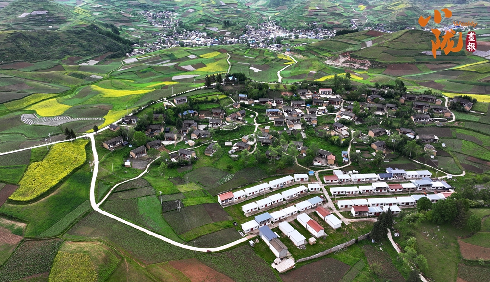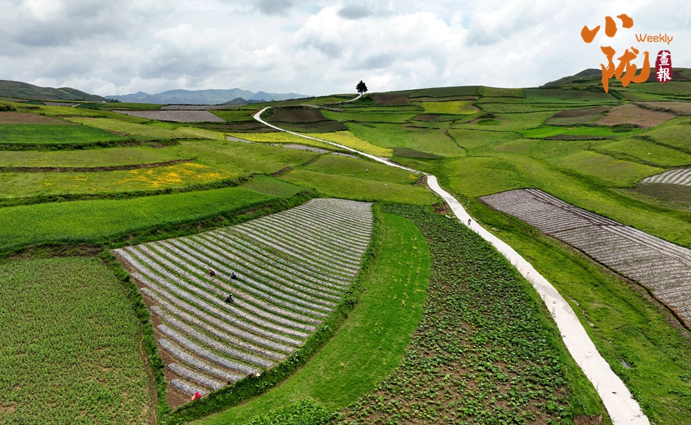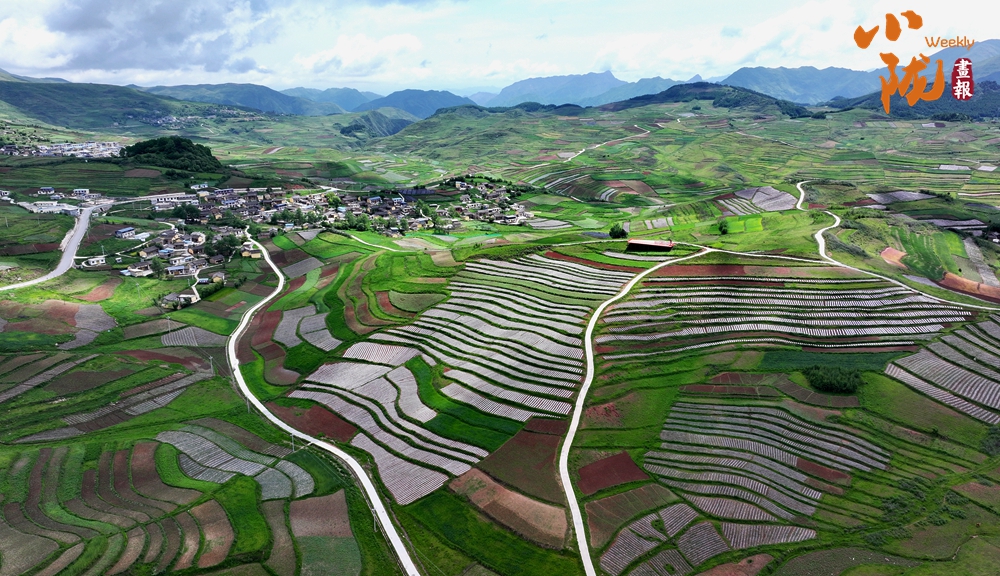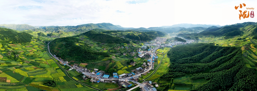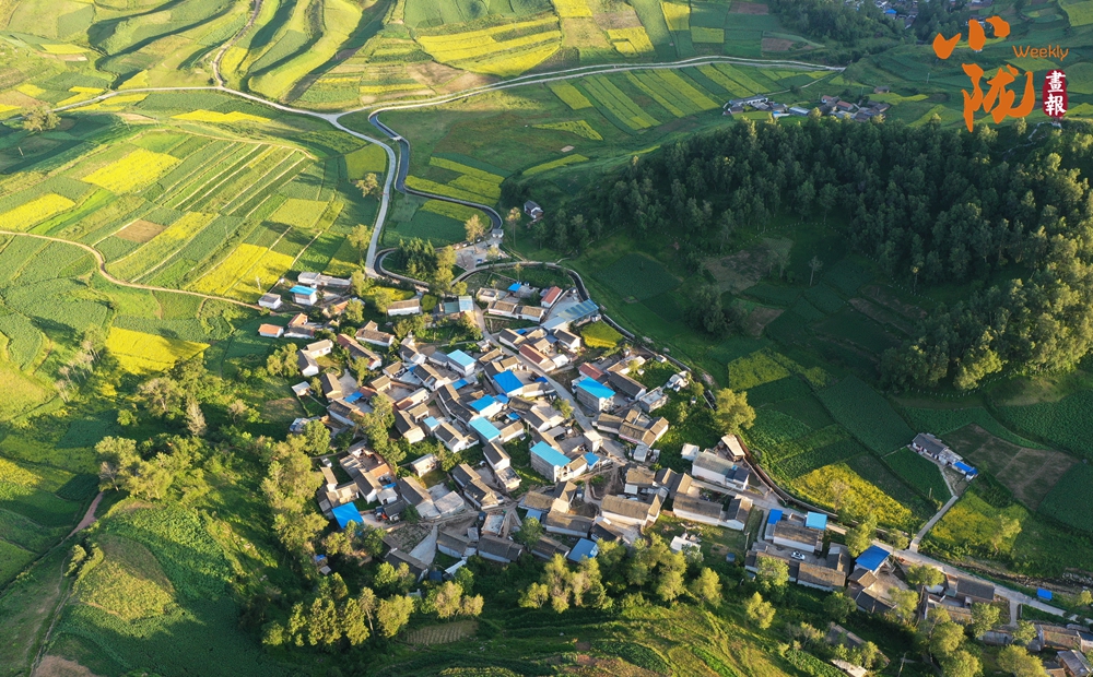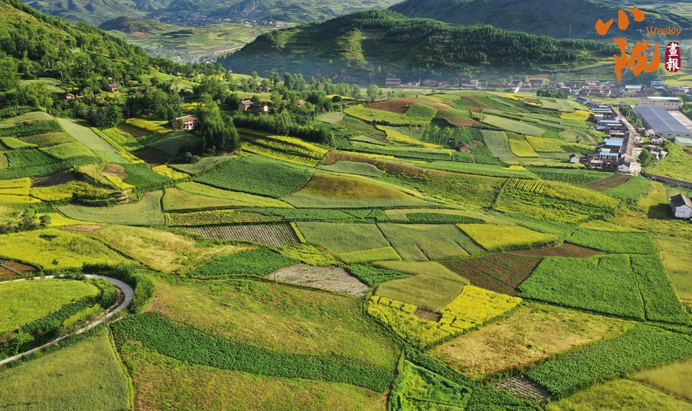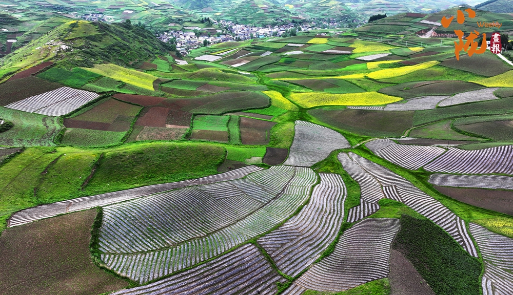 從空中俯瞰,阡陌縱橫與遠(yuǎn)處連綿起伏的青山,錯(cuò)落有致的民居交相呼應(yīng),勾勒出一幅美麗的“田園畫(huà)卷”。