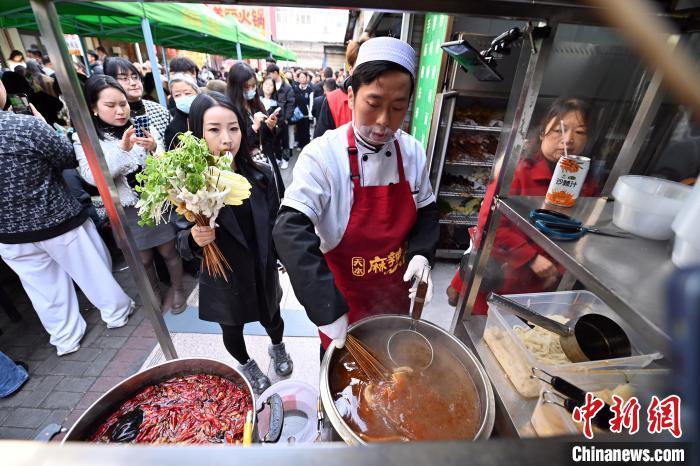 3月14日,甘肅天水,商家正在制作麻辣燙。(資料圖)九美旦增 攝