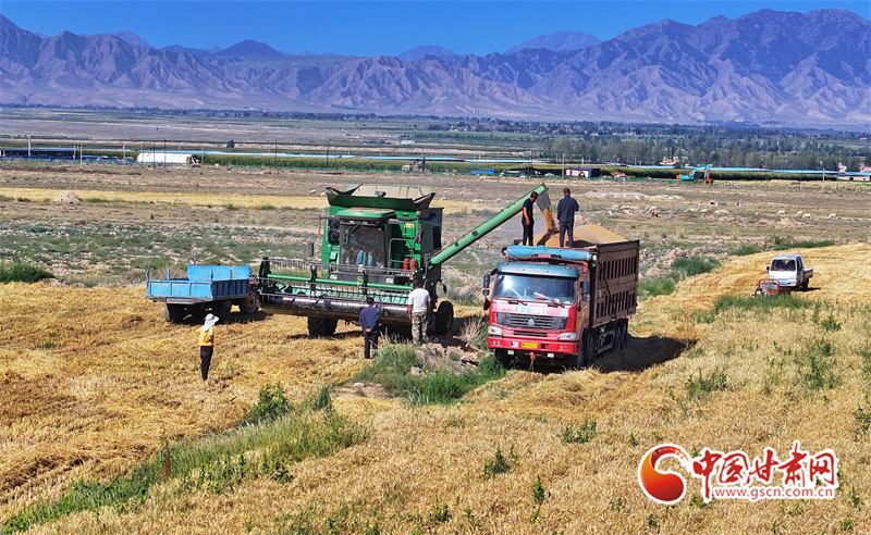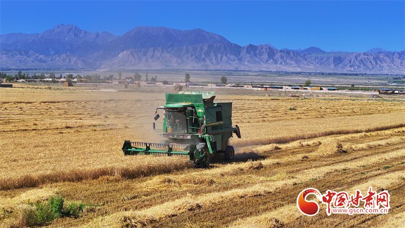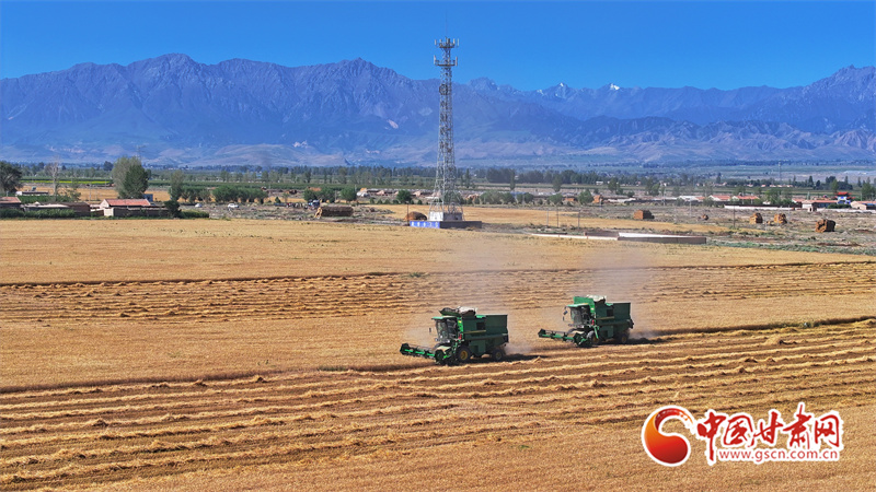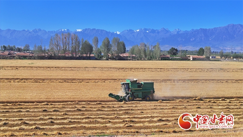 眼下,位于祁連山下的民樂縣南古鎮(zhèn)毛城村800畝連片小麥種植基地上,機聲隆隆,農機手們駕駛收割機穿梭往返麥田之中搶收小麥,一派忙碌的豐收景象。近期,隨著民樂縣沿祁連山冷涼山區(qū)小麥迎來成熟季,民樂縣種植的26萬畝小麥進入了繁忙的收割期。