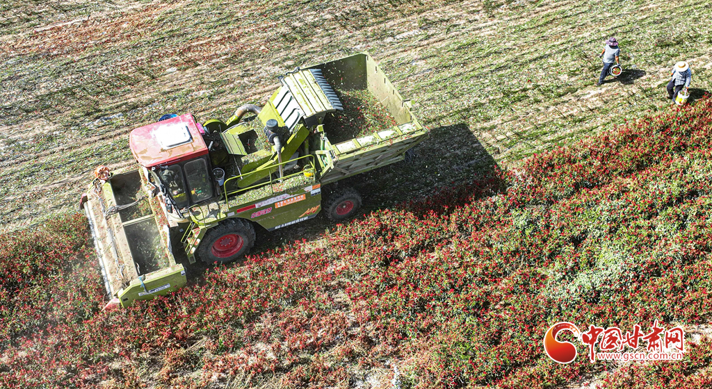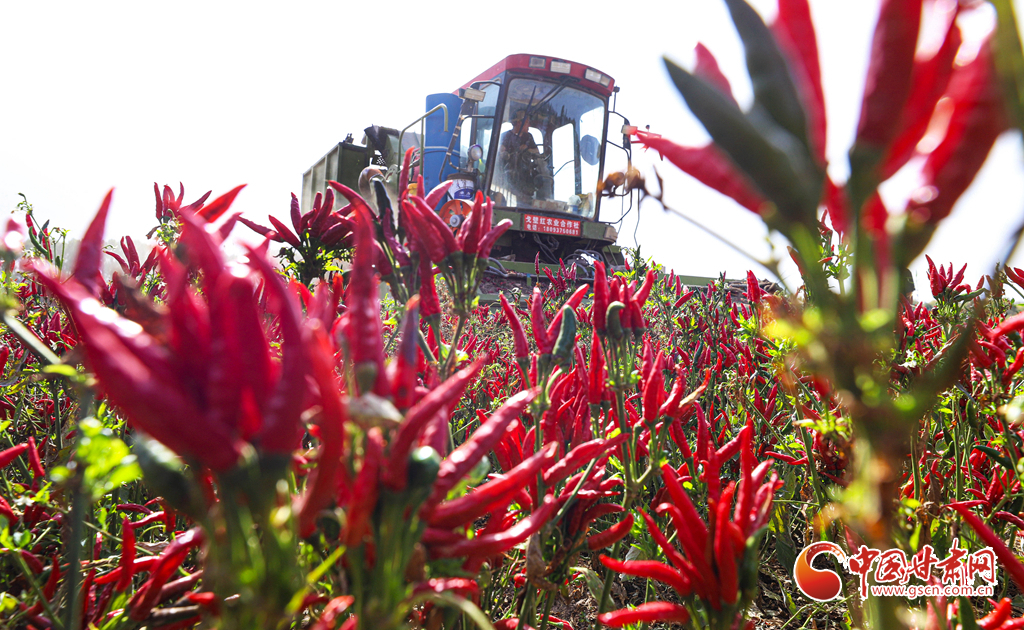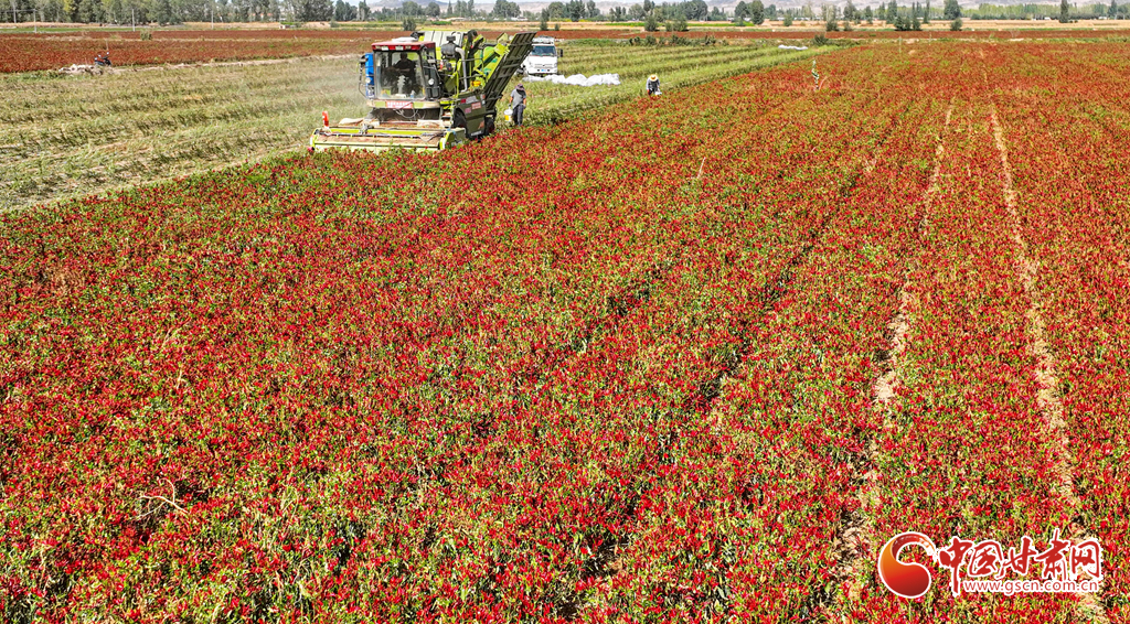 近日,臨澤縣平川鎮(zhèn)種植的3900多畝朝天椒進(jìn)入采收期,朝天椒采收機馬達(dá)轟鳴,在田地里來回穿梭,快速采收。種植農(nóng)戶們把采收的朝天椒運往晾曬場,經(jīng)過分揀、晾曬、包裝后發(fā)往山東、河南、安徽、重慶、貴州等地訂單客戶手中。