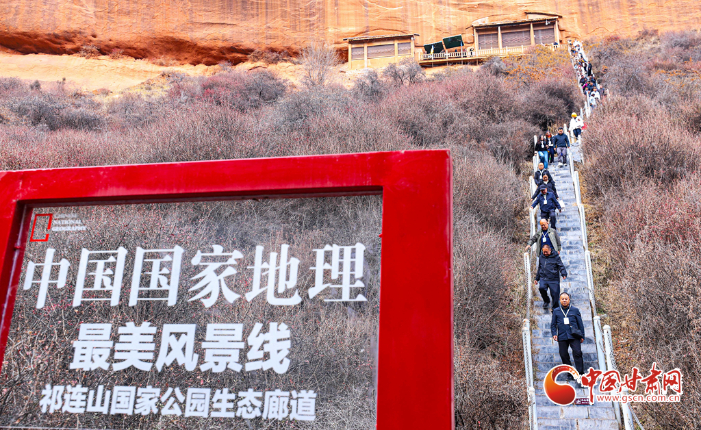 11月9日,甘肅省張掖市肅南裕固族自治縣馬蹄生態(tài)文化旅游景區(qū)金塔寺石窟內(nèi),甘肅百家旅行社的導游們正在仔細觀賞千年石窟。