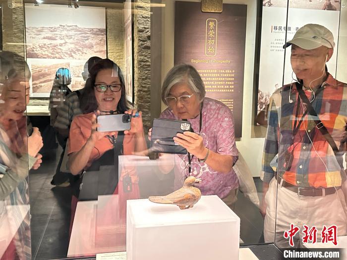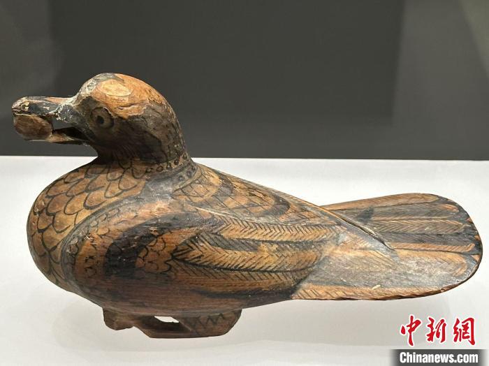 圖為正在展陳的彩繪漆木鳩?!〈魑牟?nbsp;攝