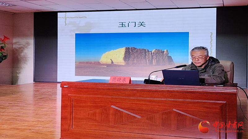 酒泉市肅州區(qū)博物館范曉東研究員以《何以酒泉-文物中的酒泉故事》為題,立足肅州區(qū)文博歷史,向與會師生介紹了古代絲綢之路、河西走廊歷史文化變遷、重要考古發(fā)現(xiàn)等,鼓勵(lì)同學(xué)們努力學(xué)習(xí),深入了解中華優(yōu)秀傳統(tǒng)文化,堅(jiān)定文化自信,將來為建設(shè)家鄉(xiāng)貢獻(xiàn)力量。