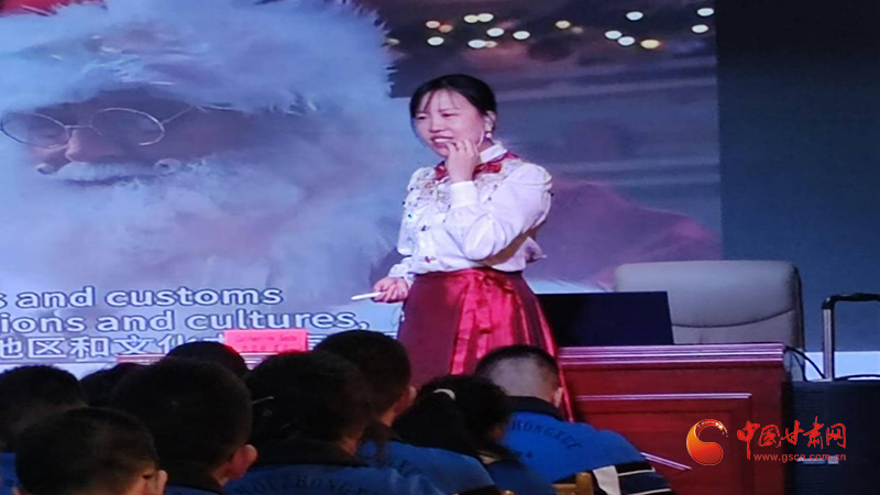 慶祝民族節(jié)日是民族文化的集中展示,也是民族情感的集中表達(dá)。肅州中學(xué)英語組的向昱老師以“地球村”引入主題,鼓勵(lì)同學(xué)們用英語講述關(guān)于中國春節(jié)的民間故事,了解世界各國不同文化背景下對節(jié)日的慶祝方式,引導(dǎo)大家在文化交流中尊重差異、理解個(gè)性,共同促進(jìn)文化的多樣性。