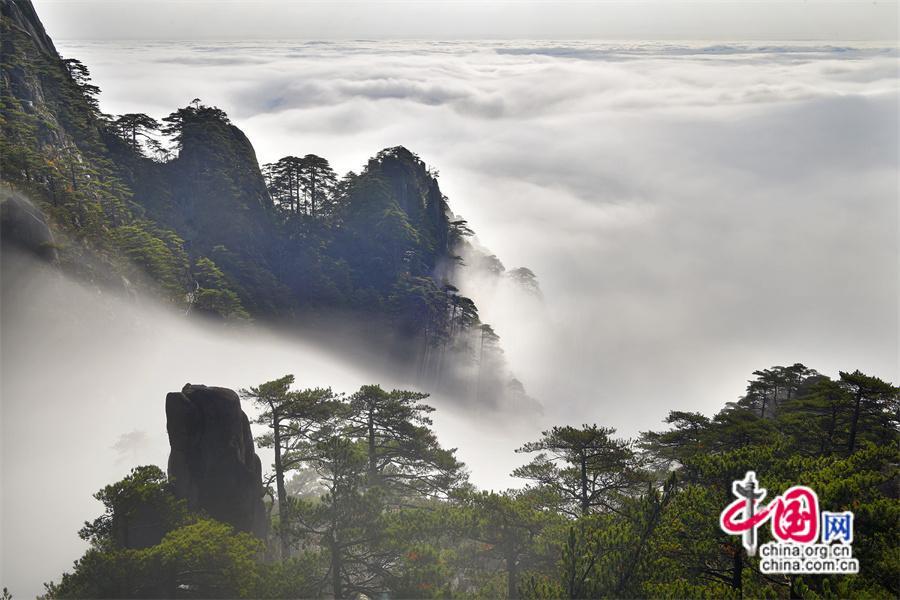 每年11月是黃山瀑布云頻頻出現(xiàn)的季節(jié),經(jīng)過前日的降雨和降溫,連續(xù)多天都出現(xiàn)了氣勢磅礴的“瀑布云”景觀。