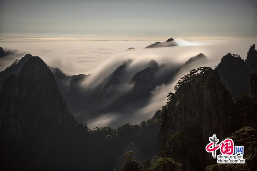 只有一個黃山:最美“瀑布云”凌空而下