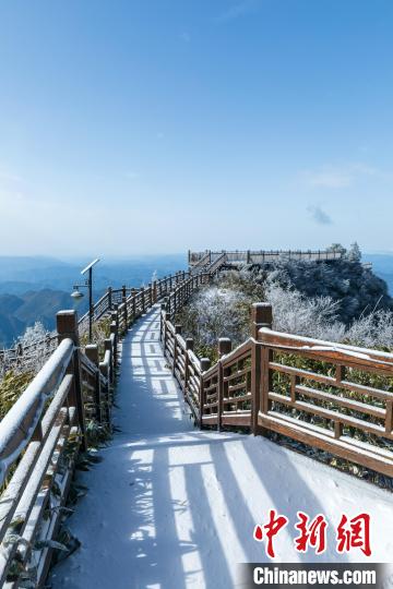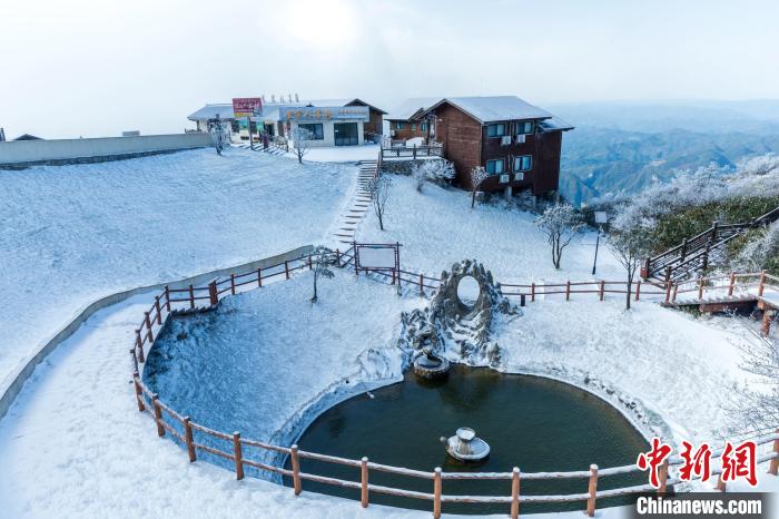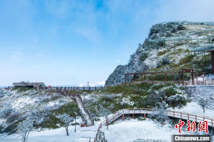 11月25日,受強(qiáng)冷空氣影響,四川省萬源市遭遇強(qiáng)降溫天氣。八臺山景區(qū)迎來了一場降雪,雪花紛紛灑灑,八臺山被裝點成了銀裝素裹的冰雪世界。鄭興平 攝