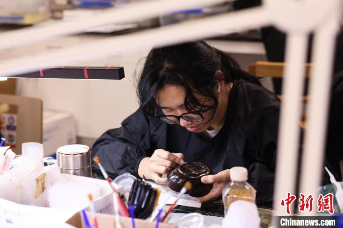 11月27日,南昌漢代?;韬顕z址博物館的漆器修復室內,文物修復師正在修復一件漆器。 劉思偉 攝
