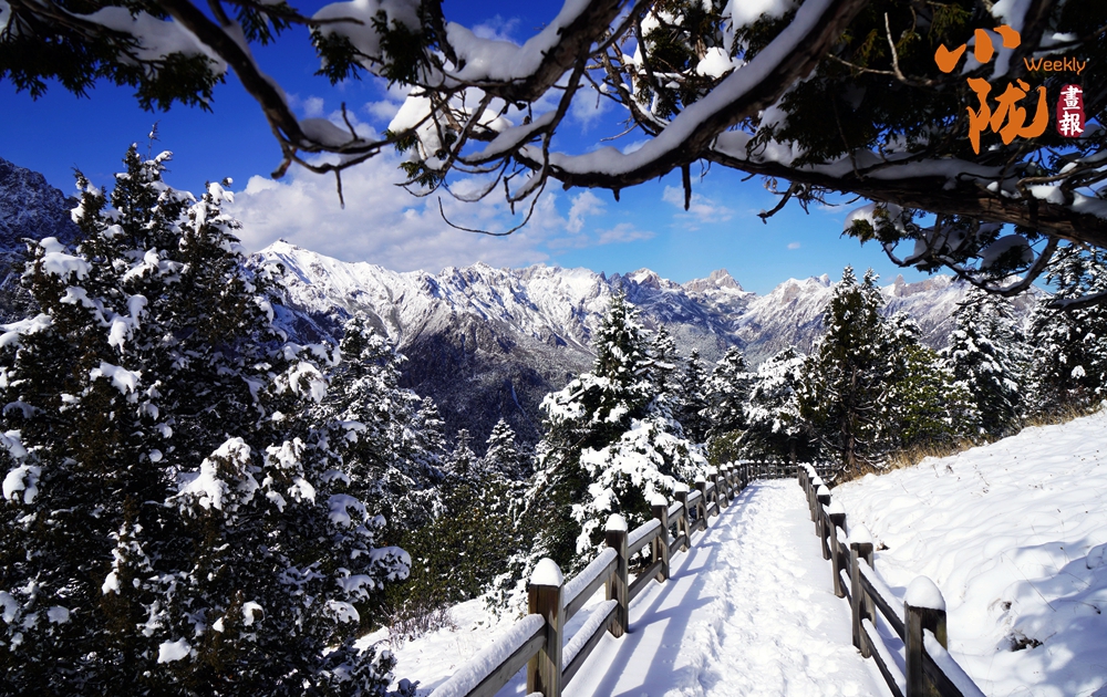 厚厚的雪層堆在樹(shù)枝上、鋪在棧道上,宛如一片潔白的海洋,別有一番風(fēng)味。