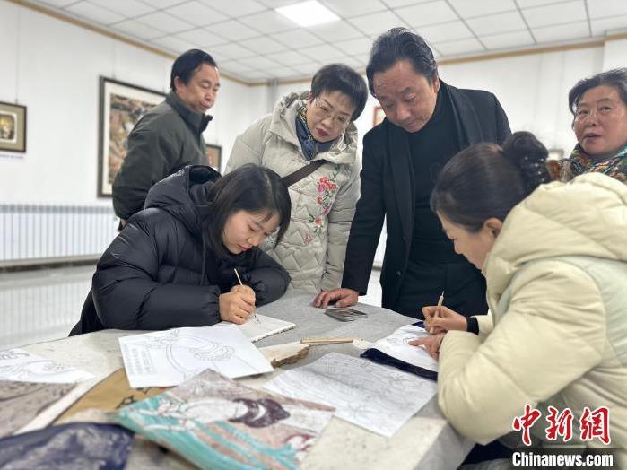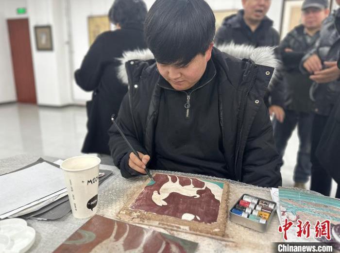 12月17日,由蘭州市七里河區(qū)委宣傳部、七里河區(qū)文體旅局聯(lián)合舉辦的“大漠孤陽映彩霞 敦煌神韻美如畫”新時(shí)代文明實(shí)踐主題活動(dòng)暨敦煌巖彩畫書畫藝術(shù)展拉開帷幕。圖為繪畫愛好者現(xiàn)場學(xué)習(xí)繪制巖彩畫。楊娜 攝