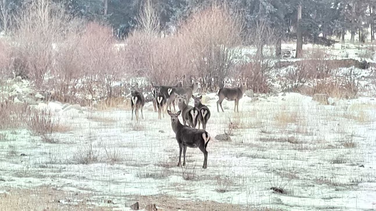 近日,甘肅祁連山國(guó)家級(jí)自然保護(hù)區(qū)管護(hù)中心哈溪自然保護(hù)站華山資源管護(hù)站管護(hù)人員在野外巡護(hù)過(guò)程中,在轄區(qū)海拔2900米的山區(qū)內(nèi),偶遇一群正在覓食的馬鹿,立刻用手中的巡護(hù)終端拍攝到了這珍貴的畫(huà)面。
