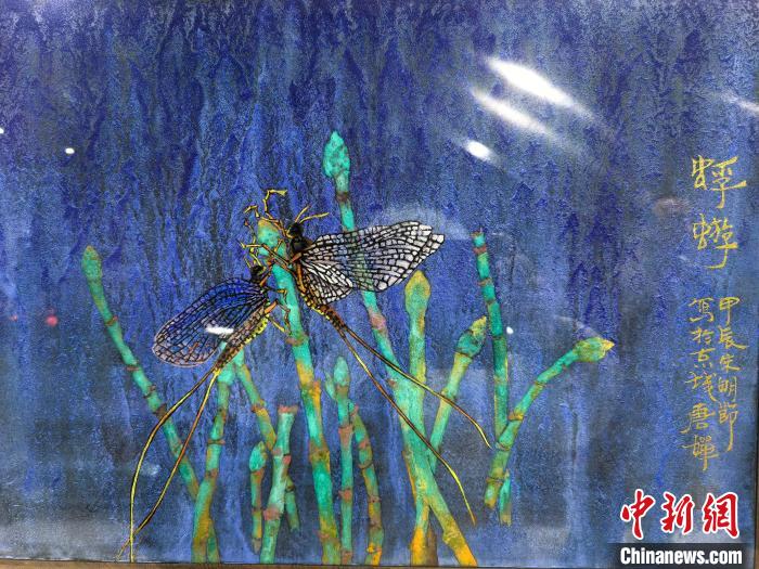 “蝶戀花”礦物顏料昆蟲復(fù)原畫作。任麗娜 攝