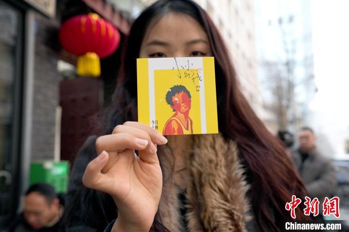 12月31日,四川成都,面館自制的紀(jì)念卡片。近日,隨著電影《小小的我》的熱映,電影中男主角劉春和與外婆吃肥腸粉的一家成都面館成為熱門打卡點。中新社記者 安源 攝
