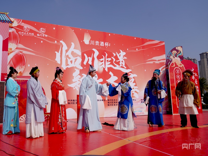 演員們身著艷麗的戲服,先后表演了《王媽媽愛雞》《游園驚夢》等節(jié)目。撫州采茶戲是江西臨川傳統(tǒng)戲曲文化的重要組成部分之一,是在明代茶燈戲的基礎上,吸取當?shù)孛窀栊≌{發(fā)展而成,據(jù)《臨川縣志》記載,迄今已有四百余年的歷史。