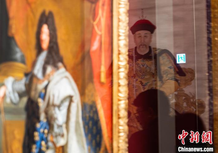 2月19日,正在香港故宮文化博物館持續(xù)展出的“當(dāng)紫禁城遇上凡爾賽宮——十七、十八世紀(jì)中法文化交流”展部分珍品煥新亮相,《康熙帝戎裝像》《龐巴杜夫人像》等約20件故宮博物院、法國(guó)凡爾賽宮的珍貴展品與公眾見(jiàn)面,繼續(xù)“講述”中法文化之交。圖為展廳玻璃映襯的故宮博物院藏《雍正帝朝服像》(右)和法國(guó)《路易十四肖像》。中新網(wǎng)記者 侯宇 攝
