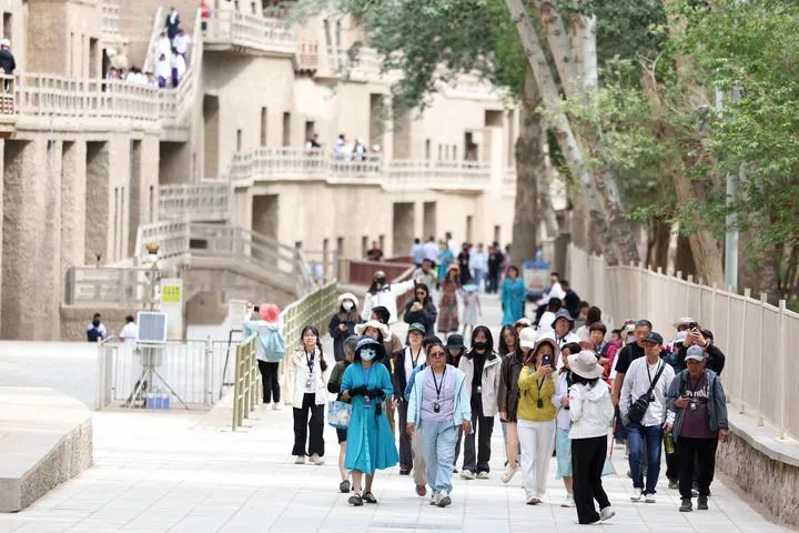 2024年6月7日,游客在莫高窟參觀(guān)游覽。新華社記者 郎兵兵 攝