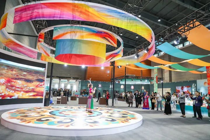 2024年9月21日,與會(huì)嘉賓在第七屆絲綢之路(敦煌)國(guó)際文化博覽會(huì)上參觀(guān)。新華社記者 郎兵兵 攝